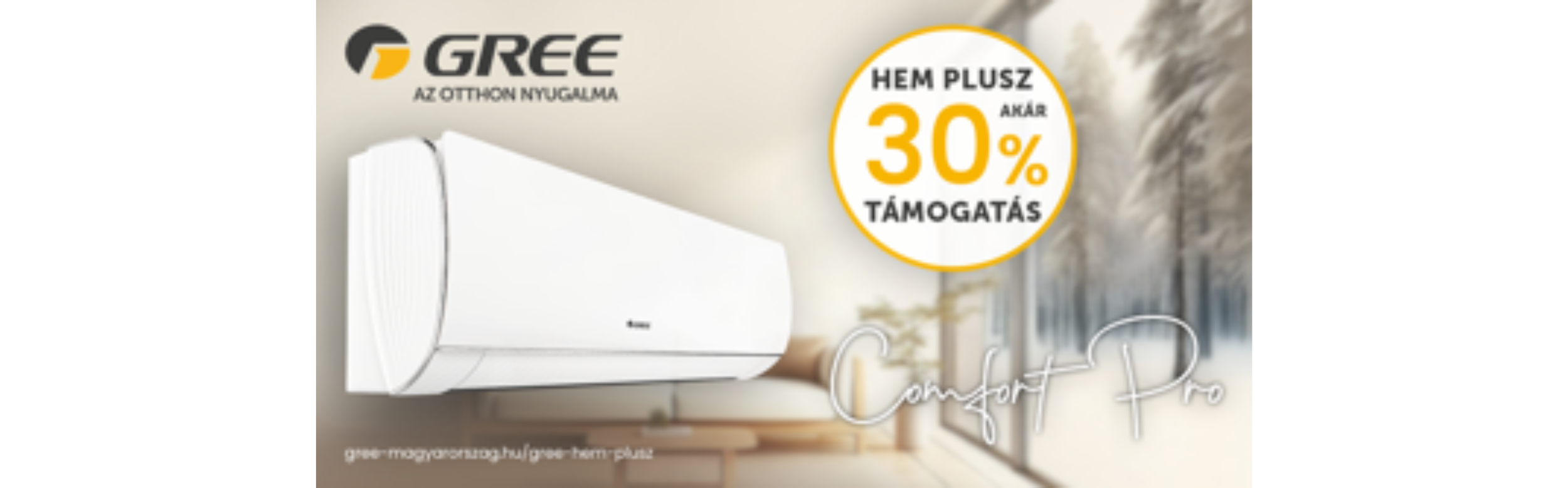 2025. szeptember 15-től új lehetőség nyílt azok számára, akik korszerű, gazdaságos és környezetbarát fűtésmegoldást keresnek. A Gree HEM Plusz program különösen azok számára előnyös, akik kiegészítő fűtés céljából telepítenek klímát: télen csökkenthetik a fűtési költségeiket, nyáron pedig élvezhetik a hűtés kényelmét, ráadásul mindezt Gree magasoldalfali klímaberendezések telepítésével akár 30% támogatással és 10 év garanciával.